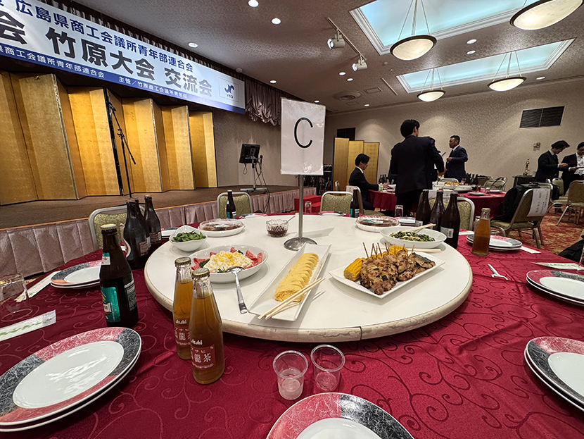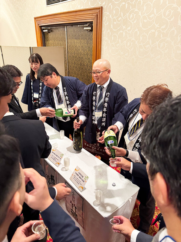 ホテルの料理の他に、竹原市内の飲食店のオードブルも用意されており、竹原の美味しいグルメを堪能出来る設営になっていました。 竹原の地酒を提供するブースは、竹原JCさんが担当されており、団体を超えて協力されている事は素晴らしいと感じました。
