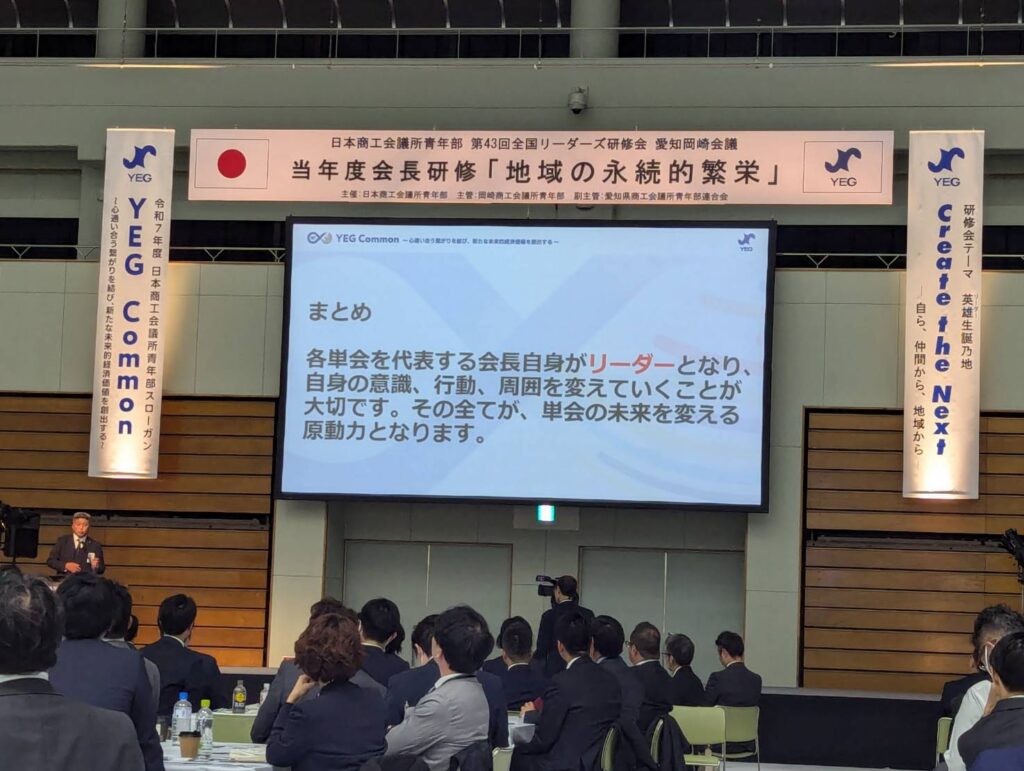 徳川家康公生誕の地・岡崎で、自ら行動する力、仲間と学ぶ力、地域と共に成長する力を軸とした“多元的リーダーシップ”を全国の約5,000人のYEGメンバーが学びました。