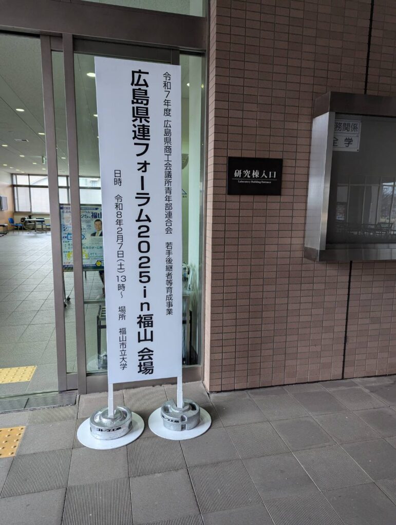令和7年度広島県連最後の事業、県連フォーラムに参加してきました。 第一部の平岡が印象に残った講師の言葉を紹介します。 登りたい山を決める。これで自分の人生の半分が決まる。 自分の志は何か?自分の人生を賭けるに値する自分の志という山とは何か? 皆さんは何ですか?ぜひ一度考えてみて下さい。 第2部の研修会、福山市立大学の体育館一面には、事前に提出した会社の概要から福山YEGが作成した県連メンバー企業の事業ポスターが貼られていました。チームに分かれて各々の事業課題を発表し、チームの中から一つ選びその課題をどう解決していくか話合い発表しました。業種も年齢も地域も違う多くの方の考え方や意見を聞けた大変有意義な事業でした。